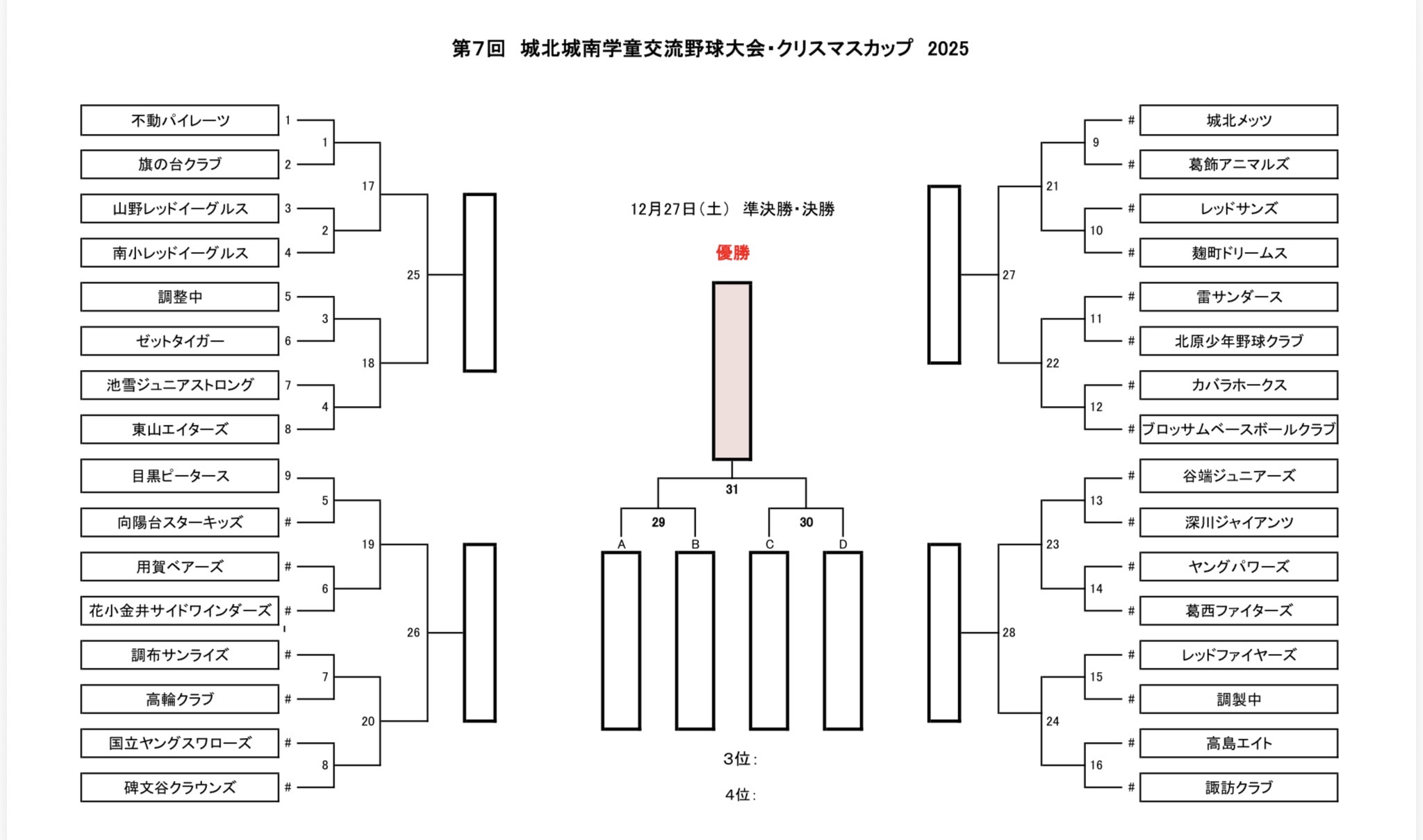 城北城南学童交流野球大会・クリスマスカップ